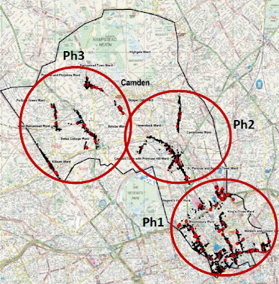 James said the original proposal for the area used the current ward boundaries for Fortune Green and West Hampstead. In the East, this is Finchley Road; in the North, the northern boundary of Camden Council; in West, Cricklewood Broadway/Shoot-up Hill/Kllburn High Road; & in the South, part railway line, part streets in South Hampstead.