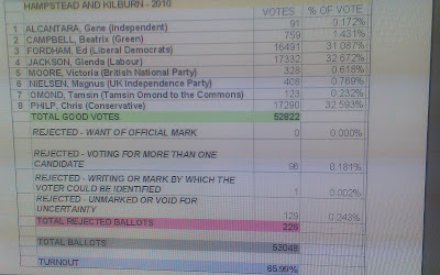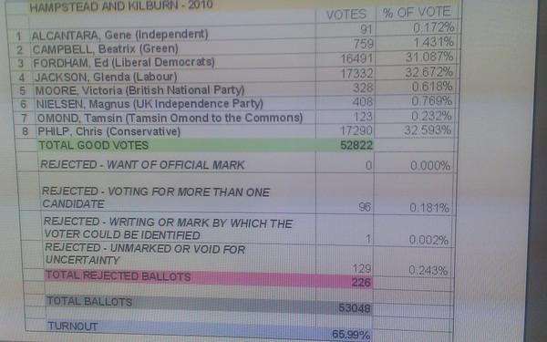 Minutes later (though a full two hours from the start of the debate) and we were all on our way, safe in the knowledge that there is no danger of apathy striking in Hampstead & Kilburn but less sure who will triumph on 6 May.