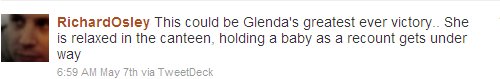 Ed’s assertion that ‘the Oyster card is the equivalent of a shareholder’s card,’ went down well, unlike Glenda’s apparent lack of action on her constituents’ behalf. ‘Where were you, Glenda,’ catcalled the crowd. ‘You live in Lewisham, for goodness’ sake.’