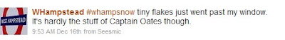 Having bombarded Stephen Fry with invitations, we were delighted when he finally saw one from @JudeStone and sent a reply.No awkward silences meant no time for the “Rename whampgather” competition, and the consensus was that we should stick to whampgather. Therefore, the draw to win an NW6 t-shirt from @ilovemypostcode took place on Tuesday – the winner seemed pleased.Whampgather excitement lingered late into the week as @SarahReardon worked some PR magic on the Camden New Journal. The article appeared in Thursday’s edition (although the paper is not readily available in West Hampstead) and online on Friday. The CNJ has said that it may even attend the next one. So, put on your best frocks and, again, doctors notes are the only acceptable excuses, although this one from @Choppsicle comes very close.