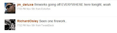 Clearly your experience of Bonfire Night rather depended on where you were. These two tweets were just 3 minutes apart:
