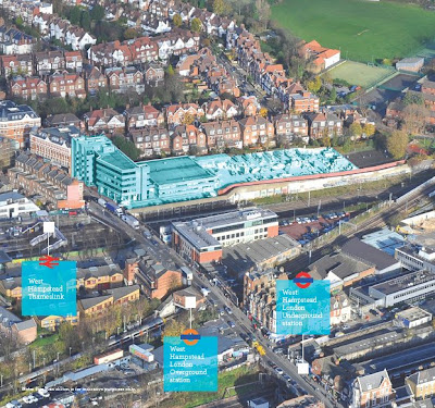 The design of the wall running from West End Lane to the station has been adjusted – and will now be a flat wall rather than with “profiled bricks”. There’s been an invisible change to some water flow issue and the zinc roof is becoming aluminium, so will look different from above but not from ground level (makes you wonder why they went for zinc in the first place).