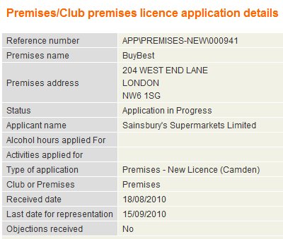 Yesterday, I noticed that the licence application had now been registered at Camden and is online.