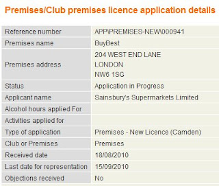 Ten days or so ago, it was brought to my attention that Best One – the mini-market on the corner of Fawley Road and West End Lane – was covered in memos from Sainsbury’s regarding an impending licence application.