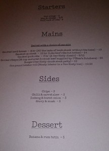 The menu isn’t extensive either, though it’s not clear whether it will change regularly depending what’s smoking – the printed menu last night didn’t tally exactly with the online menu, so there’s clearly room for manouevre. Personally, I prefer these shorter menus, which tends to imply fresher ingredients and dishes that have been perfected – there’s nowhere to hide after all.