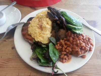 Ferociously hungry, I quickly decided to add to my scrambled eggs on toast choice via the welcome additions of avocado (a real superfood – amazing things), field mushrooms, and beans. And from that point on, a very enjoyable start to the day was assured.