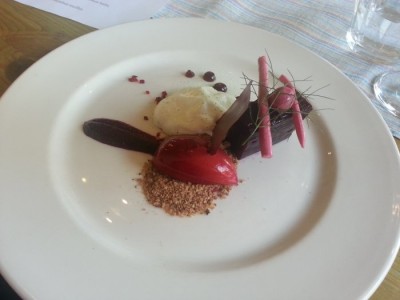 Next up was beetroot four ways, with yoghurt, malted rye and delightful little bloblets of Pedro Ximenez sauce. Vibrant flavours, with sweet, sharp and tangy elements rounded off by the PX (which perhaps might have benefited from greater quantity).