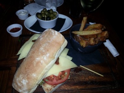 I was a little nonplussed with my Cheddar cheese sandwich, though. At around the same price as the steak option (£9.95), I looked forward to a hearty, thick wedge of mature Cheddar, especially as previously when I grabbed a cheeseboard in the pub one Sunday afternoon, it turned out to be mammoth in quantity (and not lacking in quality either). However, here we had layers of thinly sliced, very mild cheese which looked somewhat ‘commercial’ and lacked flavour. In fact, upon reviewing the photos, I was surprised to see there was actually more than one layer present – it rather felt like a salad sandwich with just a mere snipping of cheese.