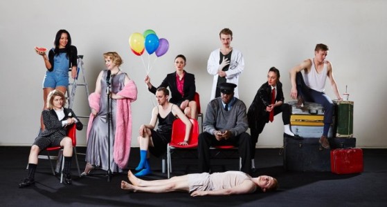 Eight actors hang out on stage, warming up in their gym gear, chatting to the audience a little, as if waiting for a rehearsal to begin. The show has quietly started as we walk in, but gets going when one of the performers’ names is picked out of a hat by a member of the audience and they become the focus of the action. What follows is a series of vignettes; snapshots of a life lived so far, tales of love and loss, interspersed with lots of physical challenges and silliness.