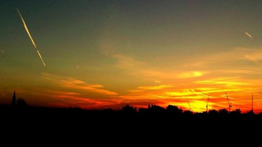 Sunset tonight, St Mary’s to the left and the West Hampstead Square shipyard cranes to the right. via @mauriceticulous