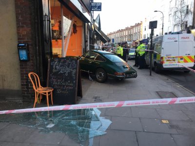 Shortly before 3pm on Friday afternoon, a vintage Porsche veered off West End Lane, mounted the pavement and crashed into Lena’s cafe trapping a female customer. The customer, Abigail Cinnamon, was sitting outside with a friend, Jessica Klein. The two 20-year-olds don’t live in the area but had decided to meet up for a ‘quiet coffee’ and chose West Hampstead.