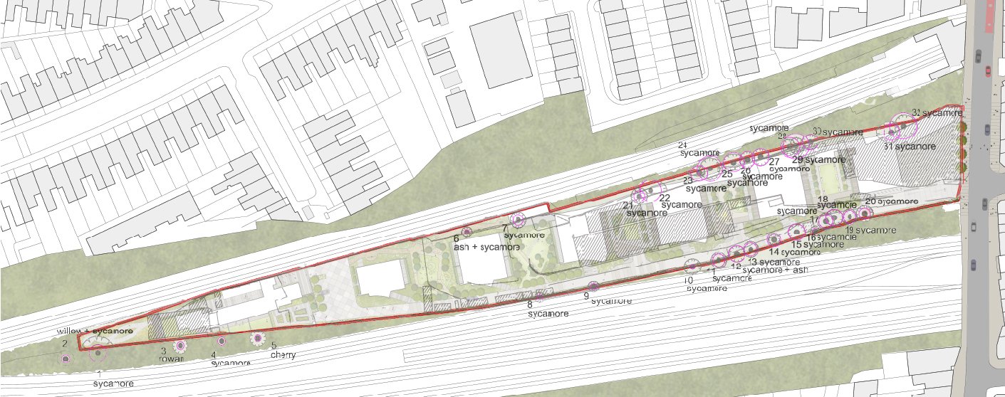 The railway embankment leading to the new station was built-up to widen the pavement from 1.5m to 12m. Incorporating the existing lime trees into this new public space and allowing the station to be seen from West End Lane, were also central to the new station design. The glazed brick wall, designed to reflect the changing colours of the lime trees above, brightens the approach to the station and draws people towards it. The space has become a wellused local meeting place and the venue for West Hampstead’s weekly farmer’s market, as well as giving some relief to the narrow and congested pedestrian environment along West End Lane.