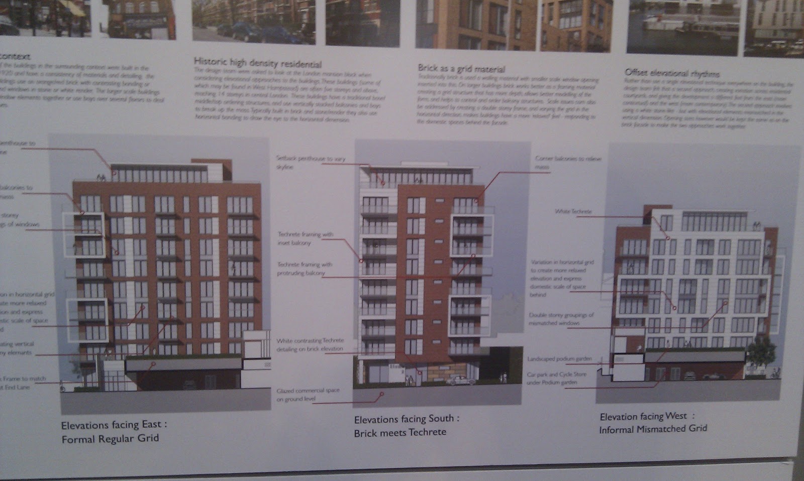 Last week, quite a large group of locals turned up at Sidings Community Centre to hear a presentation from the developers and architects of the 187-199 West End Lane site. It was chaired by Frances Wheat, Head of Development Control at Camden’s planning department.