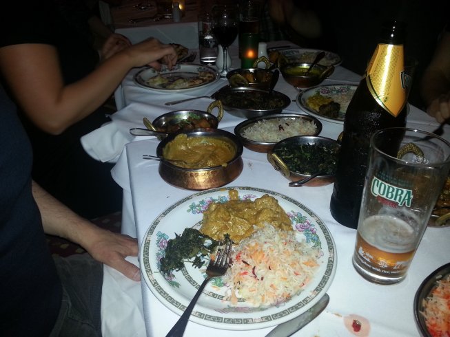 The sauce was very similar to how I remembered it; ‘traditional’ – very buttery, and nicely tangy. Onions finely chopped, though personally for a dish like this, or a Rogan Josh or Korai, I like big chunks of tomato, onion and things; it makes it more interesting. There was enough heat from the green chillies, but the green bell peppers were absent altogether; annoying.