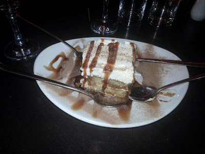 Blake had steak, which he was very happy with, pronouncing it perfectly juicy and tender while admitting that ordering fries after his potato skins starter might not have been the best call. Marcia and I braved the Lucanica sausage, which had been grilled in a a spiral and was served with sauted potatoes and green beans. It was pretty good, perhaps not as spicy as I might have liked, but I reluctantly admitted defeat towards the end (this was another light bite!).