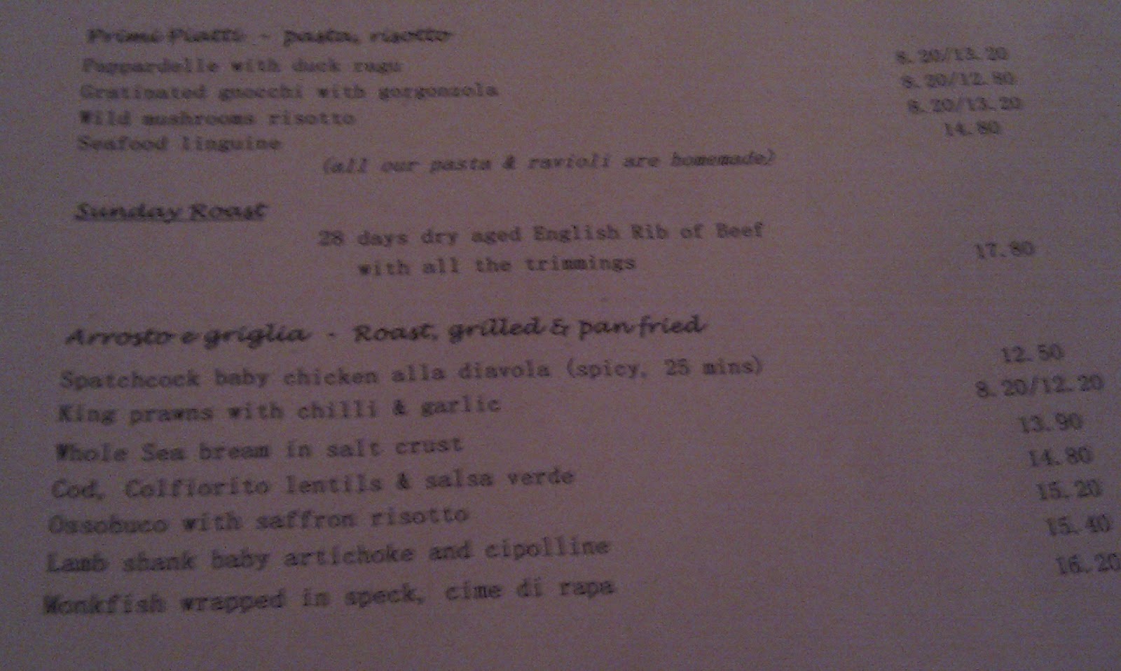 Menus came promptly. It is all ever so slightly confusing with starters, light bites that sound like entire meals (a lamb’s knuckle can surely never be a light bite?), main courses, and then a separate list of specials which overlapped mostly with dishes listed on a blackboard but not entirely.