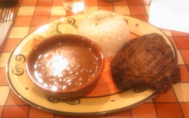 The moquecas (a Brazilian fish stew) looked good and were “hearty” according to Moya. The rest of us went for steaks, My ribeye was a little undercooked in the middle, despite the waitress being insistent that I had it medium. It tasted good, but looked like it had suffered from freezer burn. The side of beans was really good – in fact a meal of just the sides would be quite appealing. Sarah E, Sarah W and Dominic also went for steaks, while Mark splashed out on the monster T-bone.